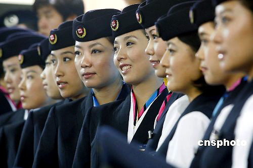7月8日,北京地铁4号线员工制服发布仪式在4号线中关村站举行。此次发布的制服包括运营人员制服、维修人员工服、保安制服三大类。4号线9月下旬试运营时,此批制服将正式与乘客见面。4号线运营人员制服分为夏装与冬装两个系列,以藏蓝色为主色调。值得一提的是,女装上衣与马甲领型均采用隐形西服领,女装衬衫采用了中式服装的立领,突出中式元素,搭配丝巾,使着装员工显得更为活泼靓丽。中新社发 郑雄增 摄