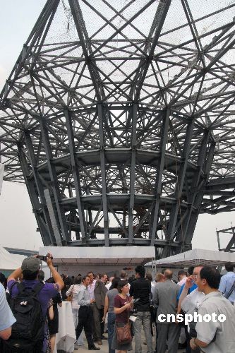 7月8日,上海世博会德国馆举行了封顶仪式,这也是世博园区第一个封顶的外国展馆。德国馆的场地位于上海浦东区卢浦桥南,占地面积6000平方米,与法国、波兰和瑞士相邻,四国的展馆环绕着一个世博园区内的小广场。中新社发 海牛 摄