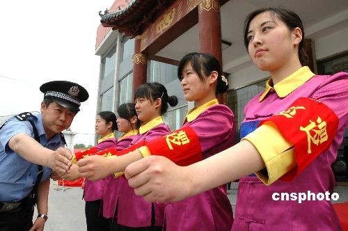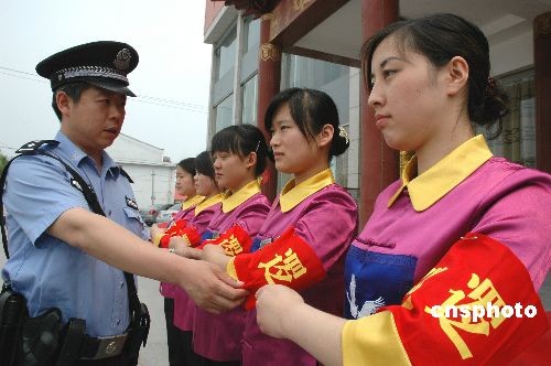 2009年7月9日,山东首支全运会酒店女子巡逻队在淄博周村北郊镇成立。当日是第十一届全国运动会倒计时第99天,来自山东淄博周村区的10名酒店女子在北郊派出所民警的带领下开始“上岗”巡逻。据悉,全运会期间,她们除担负酒店周边治安巡逻任务外,还负责救援受困游客和景区防火灭火等工作。中新社发 梁宝海 摄