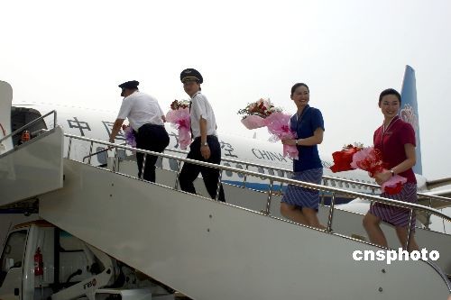 7月15日,一架中国南方航空公司崭新的波音737—300客机满载125名旅客,从武汉天河机场腾空而起,目的地台北桃园机场。此次开通台湾直航包机是中国南方航空公司开启汉台直航常态化的首航。此次航班的旅客中61%是武汉市及周边地区的大陆居民赴台观光的旅游团队,另外的39%是散客,主要以公商务和探亲旅客居多,也有部分是返台的台胞。中新社发 湖北分社 摄
