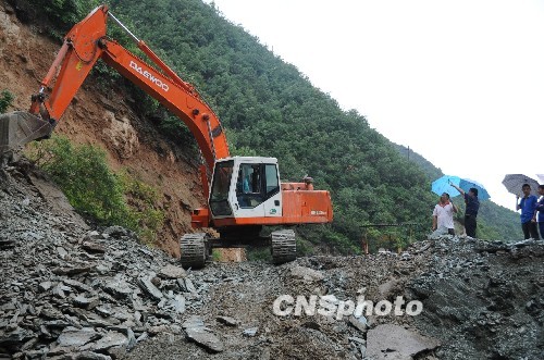 7月14日至18日,“5.12”地震重灾区甘肃省文县连续遭受强降雨袭击。中庙、碧口、玉垒、范坝、石鸡坝等乡镇受灾严重,目前,具初步统计,大雨引起的滑坡、泥石流、山洪灾害共造成死亡2人死亡,1人受伤,1人失踪,数万亩农田被毁,文县境内国、省道多处塌方,交通一度中断。目前,政府已经启动紧急预案,各工作组第一时间赶赴现场,抗灾救灾工作正在有序进行。中新社发 刘二银 摄