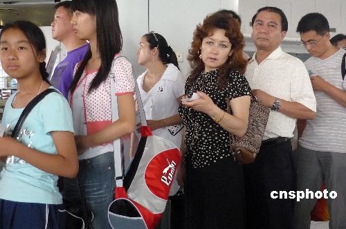 7月19日,在北京首都国际机场,众多乘坐飞往新疆乌鲁木齐航班的各地游客排队登机,乌鲁木齐“七·五”事件后,各地飞往新疆旅游的游客逐渐增多。图为首都机场前往乌鲁木齐的乘客正在登机。中新社发 钱兴强 摄