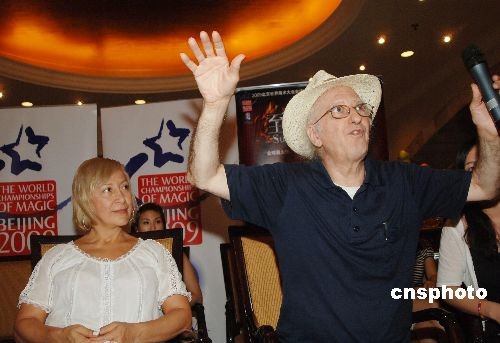 7月20日,2009北京世界魔术大会召开发布会,宣布开幕式晚会预演将于7月21日至23日在北京保利剧院拉开帷幕。9位在国内外获得金奖的魔术师将亮相本次晚会,获得中国杂技“金菊奖”金奖的农民魔术师汪奇魔、“金菊奖”全国魔术比赛金奖获得者傅琰东、曾获“宝丰杯”全国魔术金奖的戚原睿、首次展示“水里变魔术”的邬鹏程将同台表演。图为将于本次大会献艺的西班牙著名魔术师胡安(右)畅谈“魔幻奥秘”。中新社发 李学仕 摄