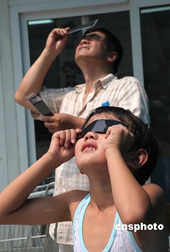 7月21日,北京天文馆出售观测日全食的观测片,一些民众早上7点就排队抢购,到中午时分3000多片观测片销售一空。中新社发 赵依依 摄