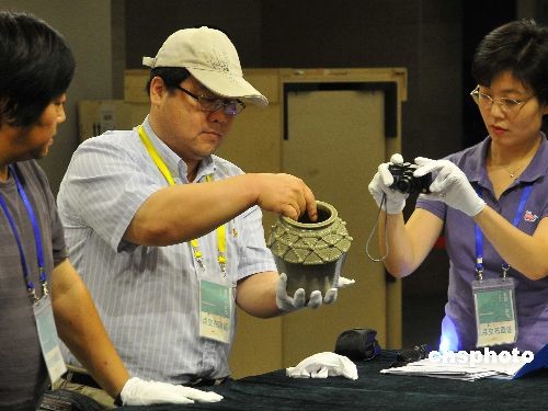 7月23日下午,由国家文物局和意大利文化遗产与活动部共同主办的《秦汉——罗马文明展》在中华世纪坛世界艺术馆举行文物开箱检验程度,精美绝仑的珍惜文物令现场人员先睹为快、拍手叫绝。据悉,此次展出共计三百件(组)文物,秦汉和罗马时期的各占一半。中新社发 潘旭临 摄