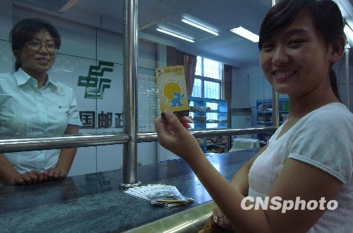 8月3日,一女士在河南漯河市嵩山路邮政储蓄网点购买上海世博会门票。第二期世博会门票自7月份开始在该市销售以来,漯河市民踊跃购买,目前已销售世博会门票5000张,对将于上海举办的世博会的表现出了极大的热情。中新社发 赵红军 摄