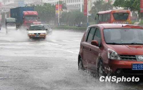 受今年第七号热带风暴“天鹅”的影响,广东阳江从8月5日上午8时起就连降暴雨到大暴雨,市区一些路段积水行车艰难。从当日上午8时至下午3时,在渔排等区域作业的25000人已安全转移上岸,各地灾情尚在统计之中,暂无人员伤亡报告。中新社发 陈明 摄