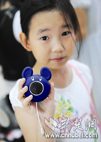 9岁的江岸区新村小学三年级学生匡嘉瑜夺得冠军。她经过多轮交换,最终换得一款价值约35元的时尚迷你音箱,让其他选手赞叹不已。