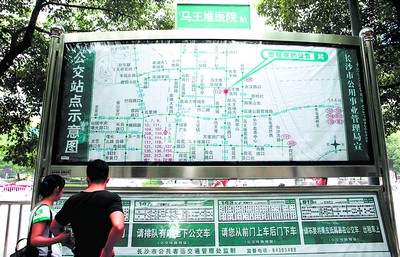 途经万家丽路的各站点,记者注意到,各个站名的标识格外醒目,就算坐在行驶的公交车上也能清楚地看到,方便不熟悉线路的乘客了解车辆行驶到了哪一站。站名下方,是一幅宽3.7米、高1.5米的公交线路示意图,为长沙公交乘车地图。全市所有公交线路和站点,上面都标注得十分清楚,乘客可明了自己所处位置及换乘线路。