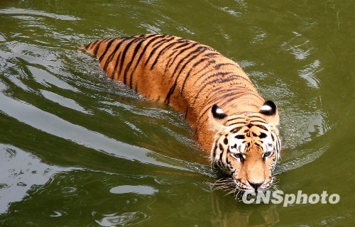 “立秋”过后,江苏省南京市依旧闷热难耐,8月16日,南京红山森林动物园狮虎园内的老虎纷纷躲进水中享受清凉,躲避“秋老虎”。中新社发 钟山 摄