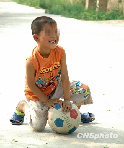 8月15日,血铅超标患儿家长李建超指着家门外仅数百米远的陕西东岭集团冶炼公司生产厂房很是担忧。 陕西凤翔县马道口村村民李建超的儿子,7岁的小诚,在这次血检中被查出血铅含量234ug/l(毫克/升)。据李建超讲,在血铅事件发生前,孩子就经常喊着头昏、肚子痛,而一年多以前在为孩子量的身高为115厘米,而现在孩子的身高只是116.5厘米,一年多只长了1厘米个头。在这次组织血检后才知道孩子血铅超标。因为按照规定血铅含量在250ug/l(毫克/升)的孩子才被送去免费治疗,所以小诚一直呆在家中等待治疗。中新社发 赵钊 摄