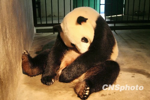 8月18日早晨,位于西安市南郊的陕西省珍稀野生动物抢救饲养研究中心内,大熊猫“楼生”顺利产下一对龙凤胎。有关专家称,这是今年陕西大熊猫繁育的第一胎,也是该省自主繁育的第一只大熊猫首度产子。图为生产中的大熊猫。中新社发 王罡 摄