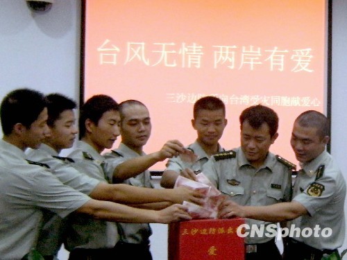 8月中下旬,福建宁德三沙边防派出所的边防官兵自发为受灾台胞捐款献爱心。中新社发 王力鹏 摄