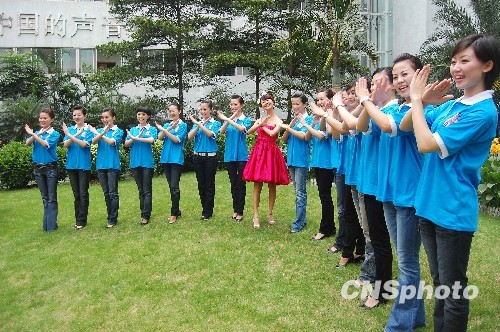 8月21日,南航“中国亚运空姐招募大汇”广州选区进入决赛环节的电视晋级赛,最后将选出前十名精英空姐参加全国总决赛并作为优秀乘务人员服务广州亚运会。中新社发 柯小军 摄