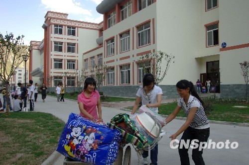 8月23日,汶川第一中学700多名高三级学生在新校园举行新学期的开学典礼,学生们搬进崭新的宿舍。广东省援建汶川的16所学校将于本月27日整体交付汶川县使用。中新社发 梁永强 摄