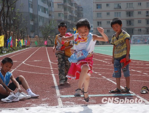 临近新学期开学,四川汶川大地震震区很多新建校园都已“准备就绪”,迎接可爱的孩子们上学。图为在位于震中汶川的汶川一小的操场上,孩子们在新校园追逐嬉戏。中新社发 钟美兰 摄