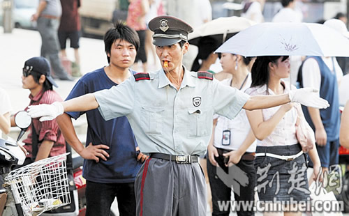 据洪山交通大队民警介绍,街道口是江南第一堵点,该路口日均车流量10多万台次,超过武汉长江大桥。每天早晨7时30分就出现高峰,直到晚上8时许才稍微松缓。这一路口共有熊伟等4名交通协管员。他们协助交警,让这个拥挤不堪的路口得以疏通。(蔡青 吴淞鸿)
