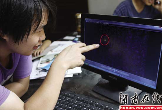长沙市民刘先生8月28日来电:昨天凌晨2点20分,我和弟弟从网吧出来,看到在长沙市妇幼保健院正对门西北角的上空,一个椭圆形的物体飞速旋转,在滞空几秒钟后,又以极快的速度四处游窜。难道这就是传说中的UFO?