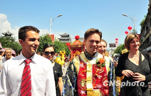 8月31日,湖北省恩施市举行“2009·恩施土家女儿会”,近万名单身青年男女参加相亲活动。“恩施土家女儿会”是恩施土家族的民族传统节日,是土家族青年追求自由婚姻过程中形成的以择偶为主要目的的节日盛会,有“东方情人节”美誉。图为“土家女儿会”吸引了“老外”参加。中新社发 杨顺丕 摄