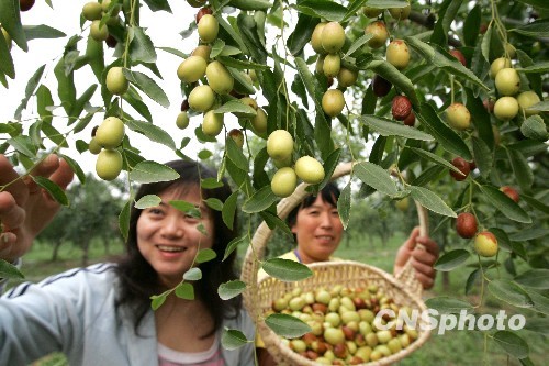 9月3日,首届“金秋满园迎国庆、孙河郎枣采摘节”启动,20万斤“奥运推荐果品”郎家园贡枣喜迎四方游人。中新社发 富田 摄