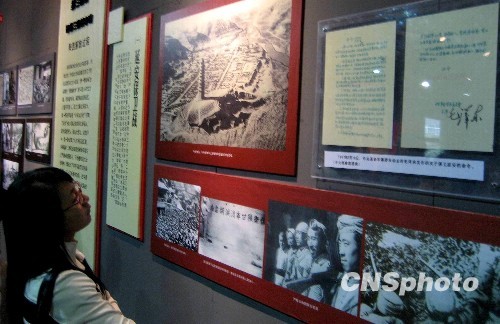 四百六十余幅中国解放战争的文献和图片档案九月九日起在西安面向公众展出,以陕西解放史料为主要内容,其中毛泽东亲笔起草的电文,周恩来、彭德怀等中共将帅的手迹属首次公开。图为毛泽东电文手迹吸引观众。中新社发 冽玮 摄