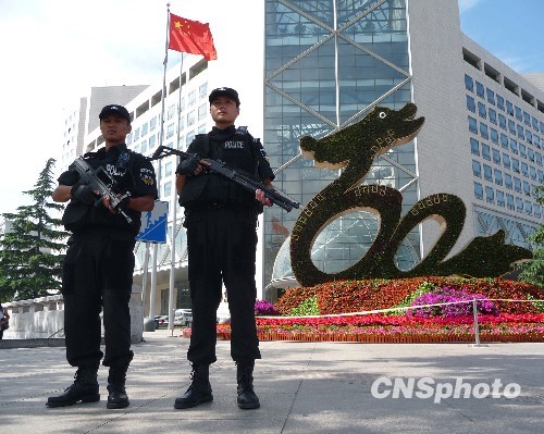 2009年9月9日,武警在北京长安街西单路口值勤,确保建国60年国庆盛典的顺利举行。中新社发 玉龙 摄