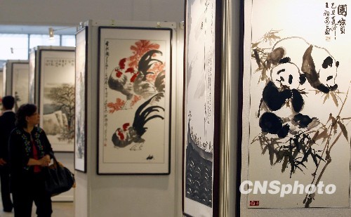 9月10日,由中华书画协会发起的庆祝新中国成立60周年全国名家书画邀请展在北京开幕。该展以“翰墨大地”为主题,邀请了阿老、孙菊生等全国600余名知名书画家参加创作,作品题材主要反映新中国成立以来各个历史时期的重大事件,改革开放以来各行各业取得的新成果。中新社发 郑雄增 摄