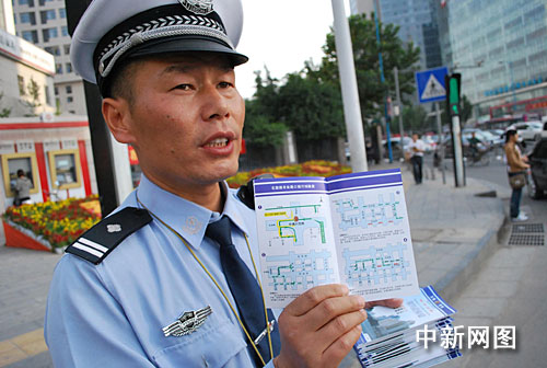 中新网郑州9月23日电 (记者 关涛 刘冬)9月23日下午,在郑州市农业路花园路交叉口,一位交警自掏腰包印制万份《便民服务手册》,免费向市民发放。