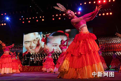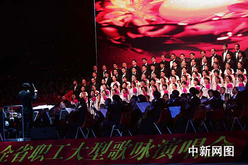 中新网九月28日电(张云)9月27日夜晚,为庆祝新新中国成立60周年,由山西省总工会组织的山西省职工大型歌咏演唱会在山西省城太原市滨河滨河体育中心举行。来全省工人战线上13支队伍共计4000余人出席这一盛会,主办者还特意邀请到十位全国劳动模范和全国五一劳动奖章获得者来到晚会现场。晚会在热烈欢庆的气氛中进行,人们在共同歌唱祖国60周年华诞的到来。(完)