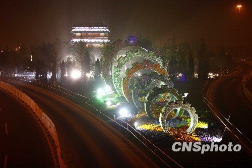 国庆前夕,北京永定门南广场工程竣工启用,正式对民众开放。占地2.2公顷的永定门南广场横跨护城河、南二环而建,成为京城南大门前一座“空中花园”。中新社发 富田 摄