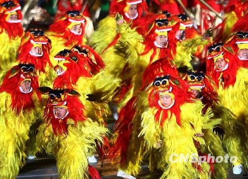 10月1日晚,庆祝中华人民共和国成立60周年联欢晚会在北京天安门广场举行,少年儿童扮演的小狮子为新中国六十华诞送祝福。中新社发 宋吉河 摄