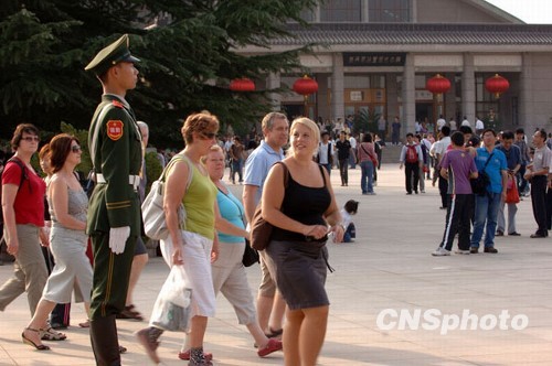 截至10月8日,秦俑博物馆今年共接待观众两百四十五万人,比去年同期增加了三十余万人。据统计,今年“十一”期间陕西秦俑博物馆共接待观众二十一万人,由于博物馆安全措施得力、接待工作周密细致,观众参观秩序井然。中新社发 张天柱 摄