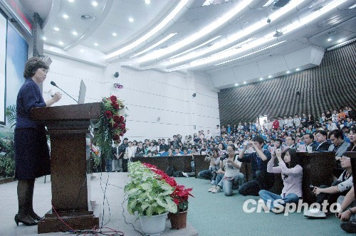 10月17日,应邀来湖北武汉参加第九届“华创会”的美国前劳工部部长赵小兰女士在武汉大学进行演讲。中新社发 张畅 摄