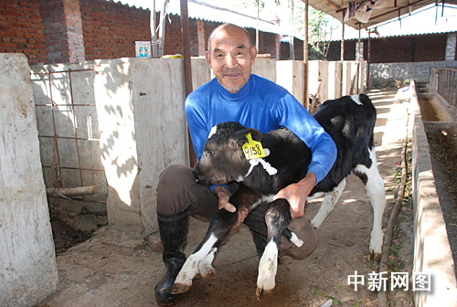 中新网偃师10月19日电 (记者 师红垒 通讯员 卢班)昨日上午,偃师市缑氏镇布村奶牛场职工向记者展示一头长着6条腿还没满月的小牛犊。该牛两条前腿的内侧明显的多出两条腿,左边多长的大一些,蹄掌也大,右边多长的小一些,蹄掌也小。