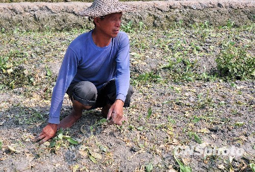 10月19日,全国农业干旱监测预报福建西南部部分地区存在轻至中度旱情,晚稻灌浆乳熟受到一定影响,福建泉州、漳州等局部地区旱情严重,泉州市、漳州市农作物受旱面积分别达39.2万亩和39.1万亩,发生饮水困难的人口分别为10.3万人和7.2万人。气象部门预测,未来3个月福建省大部分县市降水量虽较常年偏多,但局部地区的旱情仍有可能继续发展,应做好应对准备。图为福州郊区农民在干旱的菜地里。中新社发 张丽君 摄