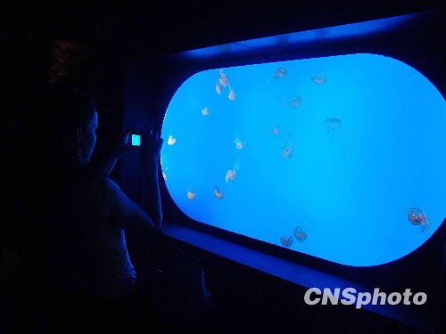 10月20日起,一种体态梦幻、优美的剧毒生物——太平洋海荨麻水母开始在上海海洋水族馆内首度成功展出,二十余只美丽毒物吸引了众多游客的眼球。原本生活在西太平洋海域的太平洋海荨麻水母相比一般的海月水母和冠状水母,颜色更深、体型更大。它们有着金色的头冠、飘舞的触须和斑斓的色彩,体态梦幻而优美,但是它们迷人的外表下却有着剧毒。中新社发 陈静 摄