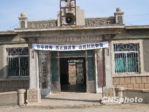10月20日,“百岁将军”吕正操遗体告别仪式在北京八宝山革命公墓举行,同一时刻在他的家乡——辽宁省海城市毛祁镇山后村村委会门前,悬挂着“百年传奇 吕正操将军 山后村的骄傲”这样一条横幅表达着家乡人对吕正操的怀念。中新社发 沈殿成 摄