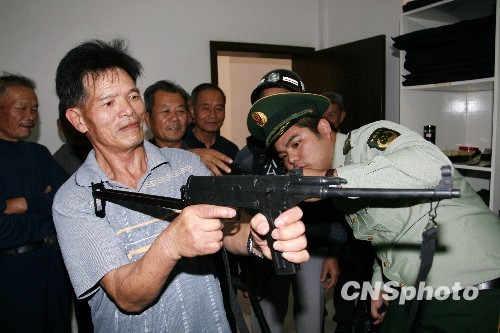 10月26日,浙江省瑞安市飞云江边防派出所开展警营开放日活动,驻地十多名老人进警营过了一个特殊的重阳节,“零距离”接触警营。中新社发 蔡宽元 摄