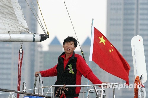 10月26日,54岁的辽宁丹东人刘俊成从鸭绿江起航,独自一人驾驶着无动力帆船“好友号”,开始环绕地球航行。他将沿黄海,东海,南海,越过太平洋,大西洋等海域,最后回到出发点辽宁丹东,用3年的时间航行36000海里。中途除需要补给外,他将不登陆停留。中新社发 陈浩浩 摄
