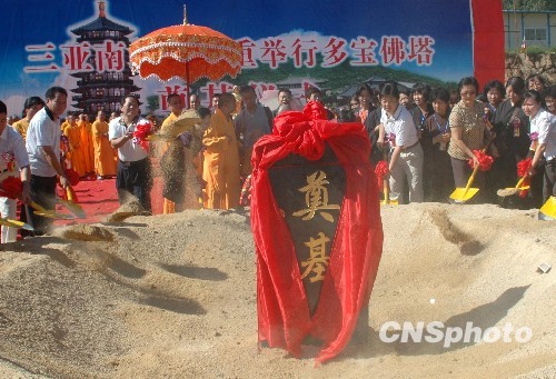 10月29日,计划总投资5000万元人民币的多宝佛塔项目在中国最南端的佛教道场三亚南山寺破土动工。这将是三亚继108米南海观音圣像开光落成后又一标志性人文景观。佛塔位于南山寺西侧,遥对南山南海观音圣像,高68米,共7层,将按照盛唐时期佛教的建筑风格修建,塔内将供奉佛教的88佛像,预计2011年建成并投入使用。