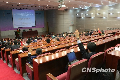 10月29日晚,世界首支甲流疫苗研制者、北京科兴生物制品有限公司董事总经理尹卫东到北京航空航天大学做了题为《创新与社会责任》的演讲,讲解疫苗生产研制过程。中新社发 苏丹 摄
