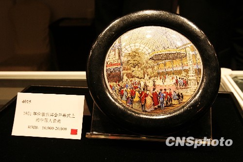 10月30日,1851年伦敦世博会开幕式彩瓷——西方熟知的“中国世博第一人”希生的形象在郑州展出。该彩瓷中表现世博会开幕式中希生的影像清晰可见,是中国参与第一届世博会的另一个珍贵实证。中新社发 王中举 摄
