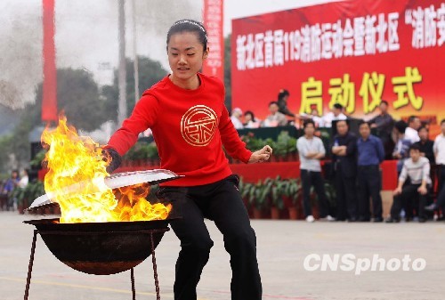 11月8日下午,江苏省常州市泰山路消防中队内举行了新北区首届消防运动会暨新北区“消防安全进万家”启动仪式,来自各乡镇、街道办事处代表队进行了消防演练比赛。据悉,今年11月9日是全国第十八个消防宣传日,也是江苏省第十五个法定消防日,今年消费日的宣传主题是“消防安全进万家”。 中新社发 一越 摄