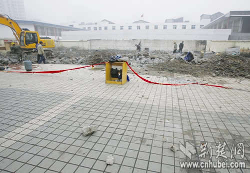 昨日(9日)上午,(武汉)汉口一座被拆除的加油站发生爆炸,数百颗碎石飞跃10米半径之外,幸未造成人员受伤。