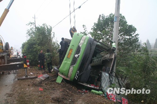 11月9日,安徽省无为县二军路一辆大客车发生侧翻。接警后,该县交警大队负责人迅速带领民警赶赴现场,组织指挥抢救工作,在公安交警、消防官兵、医护人员和群众近20分钟的奋力抢救下,17名乘客全部脱离险境,未造成一人死亡。另悉,此次交通事故中不同程度受伤的11人(9人轻伤、2人重伤)情绪稳定,正在县医院接受治疗。事故的具体原因仍在调查之中。中新社发 季宏林 摄