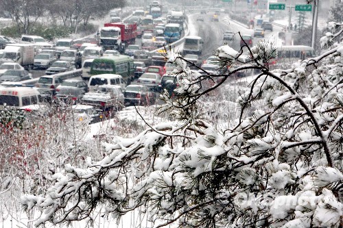 11月10日,新疆乌鲁木齐街头银装素裹。受冷空气影响,乌鲁木齐9日夜间开始飘起雪花,10日白天转为大雪,最低气温骤降至零下7度左右。中新社发 刘新 摄