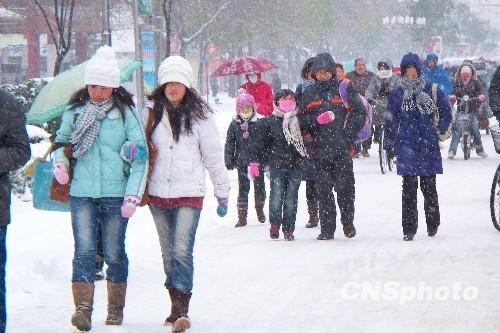 11月12日,市民冒雪踏雪而行。飘飘洒洒的一场大雪,河南省开封市到处被大雪笼罩,道路上积下厚厚的雪,交通基本陷入瘫痪,众多市民只好选择徒步出行。中新社发 李俊生 摄