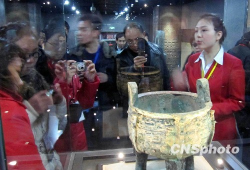 11月16日,民众在河南安阳参观中国文字博物馆内馆藏文物。当日,中国首座以文字为主题的国家级博物馆、国家“十一五”期间重大文化工程——中国文字博物馆在甲骨文发祥地河南安阳开馆。中新社发 王中举 摄