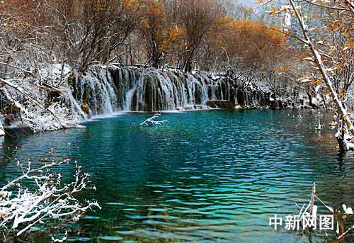 16日,一夜大雪给九寨沟的长海、五彩池、天鹅海、五花海等都披上了冬装,山下湛蓝的海子,山脚缤纷的红叶,山上多姿的雾松,让游客饱览无余。在海拔较高的长海、箭竹海等景点,堆起了近10厘米厚的雪,游人们兴奋地打雪仗、堆雪人,和雪人合影留念。目前,九寨沟旅游进入了淡季。从11月16日开始执行的淡季门票价(80元/人),也让旅游者感到惊喜。苏杰 摄