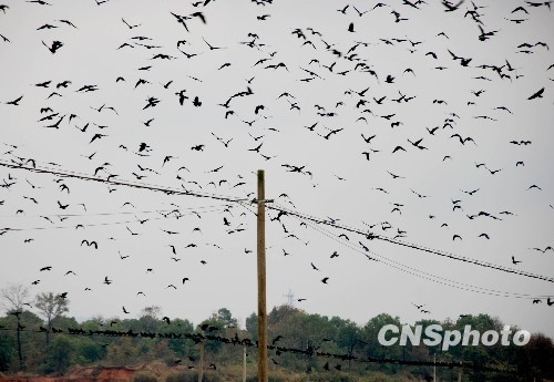 11月19日,在江西乐平市众埠镇韩家桥村田野上,成千上万只鸟儿在空中自由飞舞,呈现出一道奇特的自然生态景观。据村民介绍,由于近年来生态环境的不断改善以及当地人们爱护鸟类意识的不断提高等因素,使得冬季期间成千上万的鸟儿来此越冬,当地已成为了鸟类的乐园。中新社发 朱定文 摄